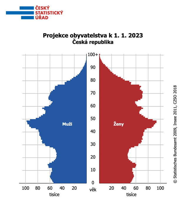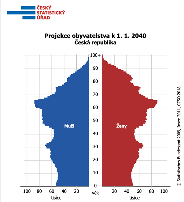 Věková struktura obyvatelstva k 1. 1. 2023 a k 1. 1. 2040