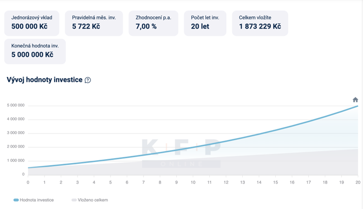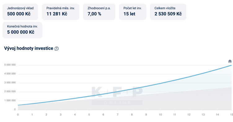 Chcete-li mít dodatečnou rentu 25 000 Kč měsíčně, potřebujete mít majetek ve výši cca 5 mil. Kč. Máte-li naspořeno 500 000 Kč, které vhodně investujete, a před sebou ještě 15–20 produktivních let, tak je nutné investovat při 15letém horizontu cca 11 tis. Kč měsíčně a při 20letém horizontu cca 5 700 Kč měsíčně.